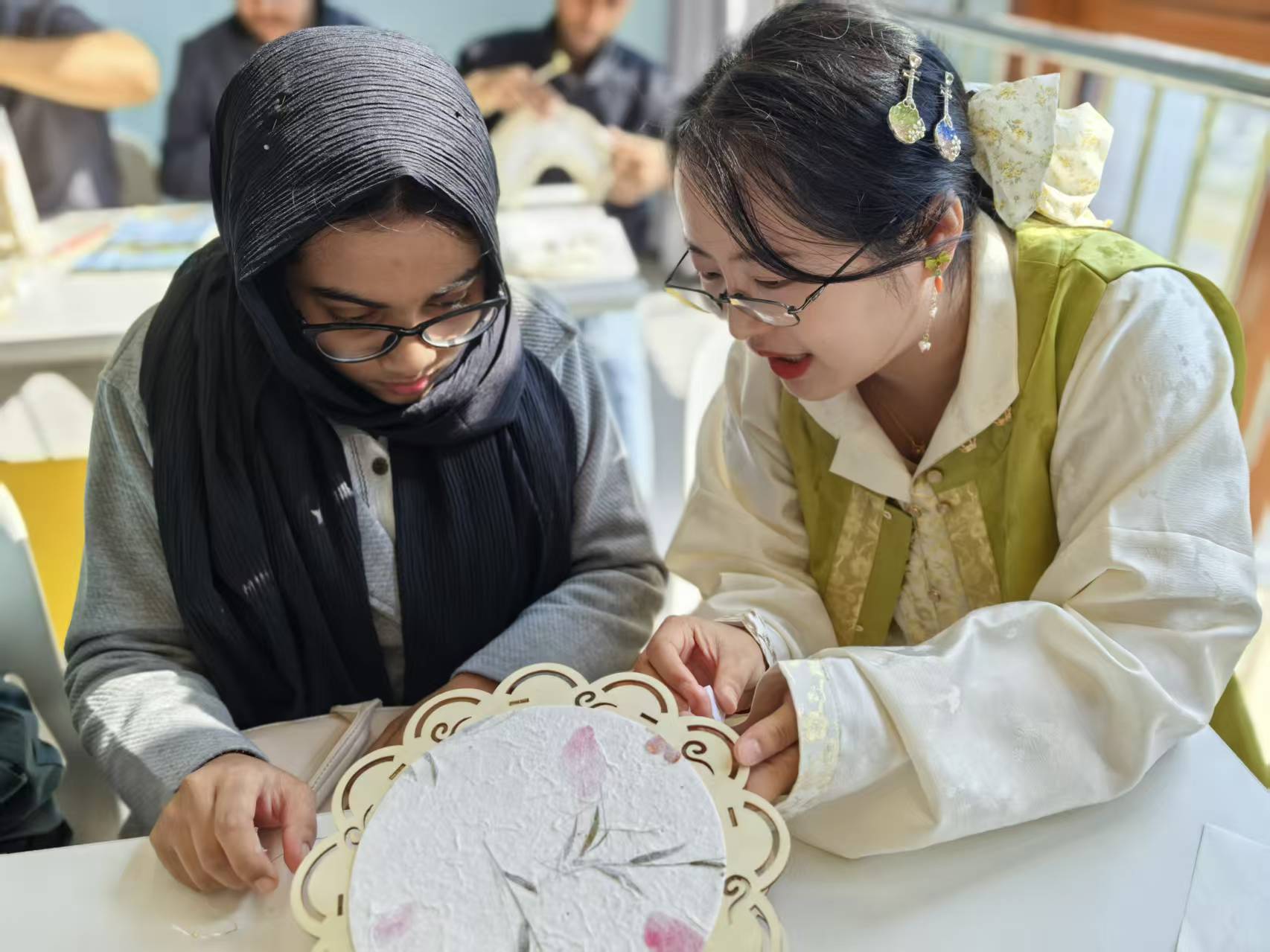 此次心理团辅的深层意义远超传统手工体验。罗珊珊老师阐释道:“灯笼作为‘光’的载体,在心理层面象征着希望与指引。留学生在适应新环境时,常会经历‘文化黑暗期’,亲手创造光明的过程,正是对其内在力量的唤醒。”活动通过非言语的艺术表达,为参与者构建了安全的情感宣泄渠道,而文化元素的融入则架起了跨文化理解的桥梁。这种“以文化为载体,以心理成长为内核”的创新模式,不仅有效缓解了学生的跨文化适应压力,更在共建共享的过程中深化了中外学子的友谊,实现了文化传承与心理育人的双赢,为推进国际化校园的心理健康服务工作提供了创新范式。