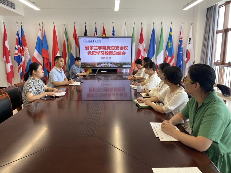 9月24日13:00,崇德楼1102会议室,爱尔兰学院党总支召开党纪学习教育总结会议,深入学习贯彻习近平总书记对党纪学习教育作出的重要指示,传达学习中央党的建设工作领导小组会议精神、学校党委总结党纪学习教育巩固深化党纪学习教育成果会议精神,全面总结部门党纪学习教育成效经验,对巩固深化党纪学习教育成果进行了安排部署。部门党总支全体党员参加会议,教工党支部和学生党支部书记分别就党纪学习教育工作作交流发言,会议由李湘主持。