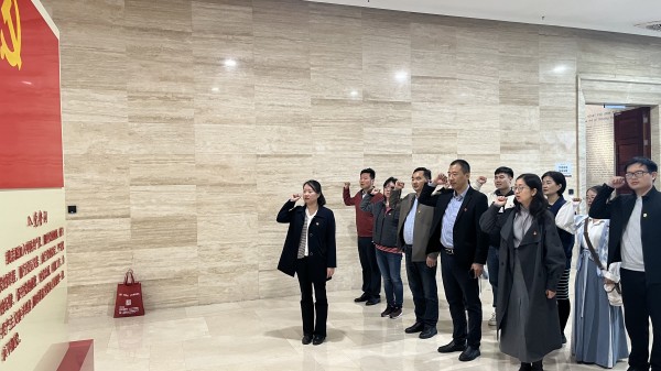 参观结束后,全体党员同志来到博物院五楼大厅重温入党誓词。大家面向党旗,高擎右拳,目光坚定,向革命烈士致以崇高的敬意,深切缅怀革命先烈为国家和人民不畏牺牲、浴血奋战的革命精神,用铮铮誓言表达传承初心使命、勇担重任在肩的决心。