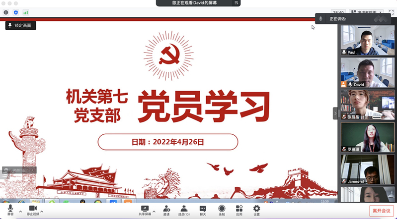 4月26日下午,机关第七党支部党员通过在线会议的形式开展了党员学习活动,党员同志们紧紧围绕“深入学习贯彻习近平新时代中国特色社会主义思想,牢记初心使命,开创发展新局”的主题开展深入学习与讨论。