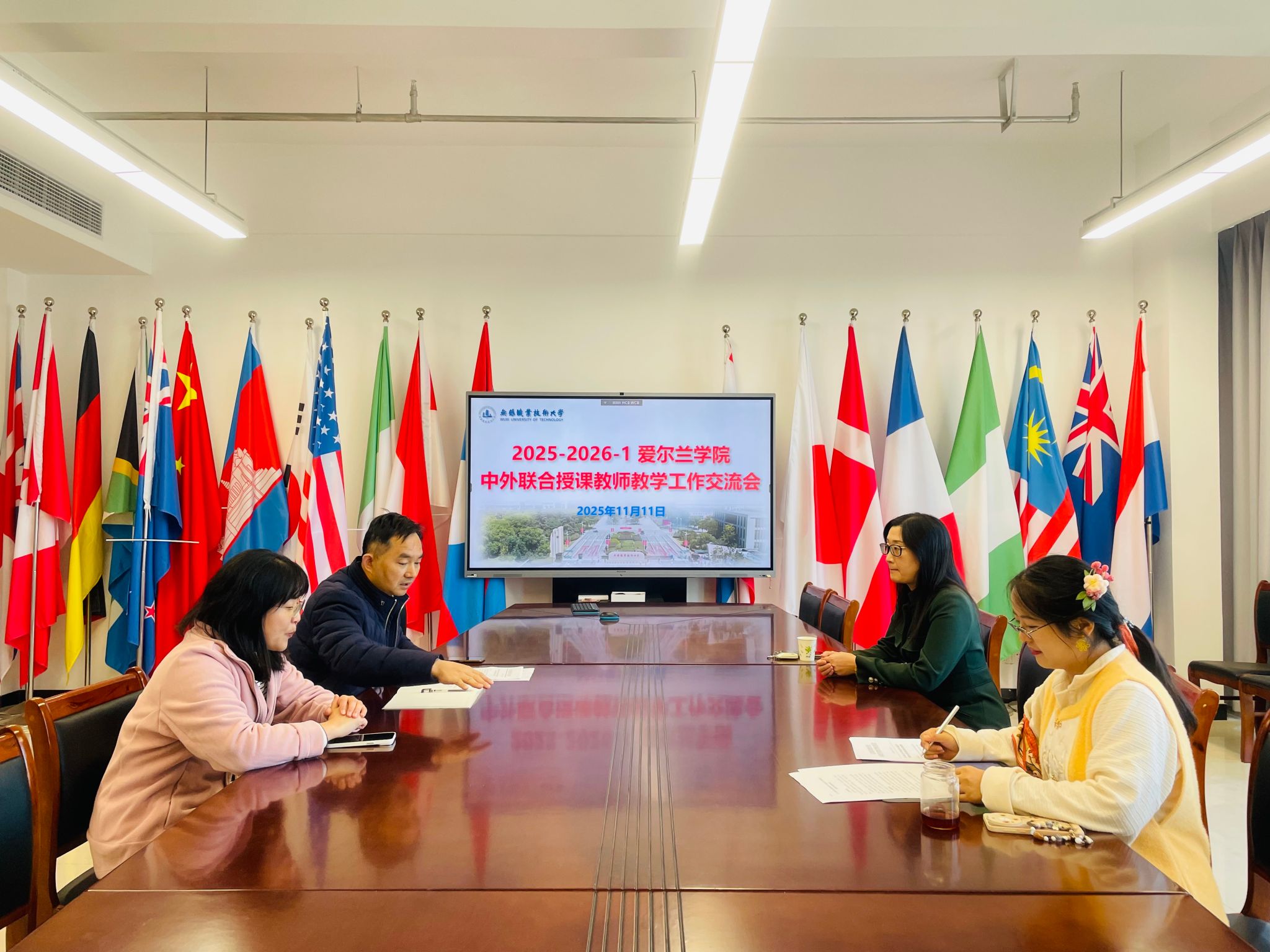 为促进中外合作办学高质量发展,切实提升中外联合授课教学质量,2024年11月11日爱尔兰学院在崇德楼1102会议室举办了2024-2025-1学期中外联合授课教师期中座谈会。爱尔兰学院副院长蒋宏成、教秘罗珊珊及中外联合授课中方专业课教师代表参会,会议由爱尔兰学院副院长蒋宏成主持。