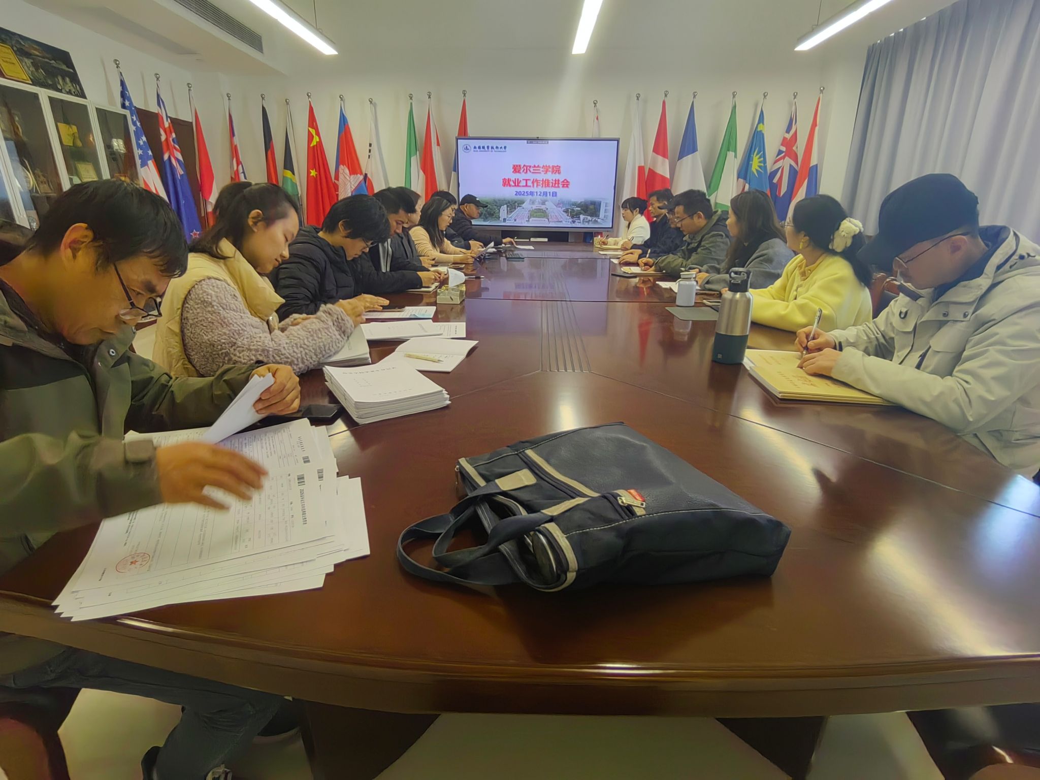 为深入贯彻落实2026届毕业生就业工作部署要求,爱尔兰学院于近期组织召开专题工作会议。学院党总支书记、学工办主任、毕业班辅导员及班主任参加会议。