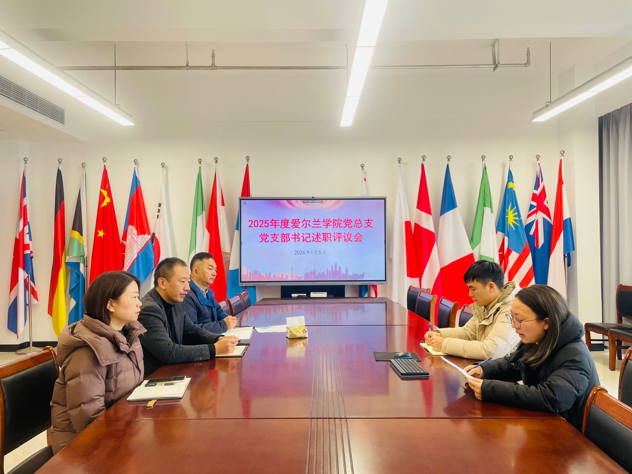 为深入学习贯彻习近平新时代中国特色社会主义思想和党的二十大和二十届历次全会精神,根据学校相关工作要求,2026年1月5日下午,爱尔兰学院党总支在崇德楼1102会议室召开2025年度党支部书记述职评议会,党总支书记、总支委员、教工党支部和学生党支部书记等相关人员参加了会议。会议由爱尔兰学院党总支书记李湘主持。