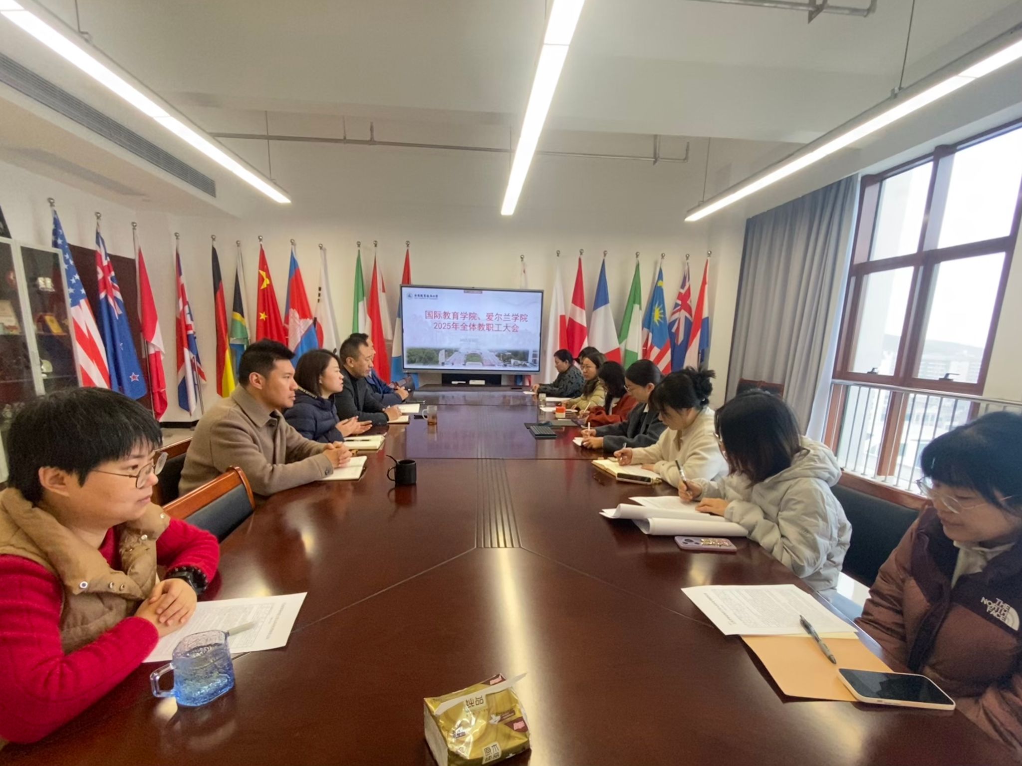 2025年12月29日,爱尔兰学院一届三次全体教职工大会在崇德楼1102举行。学院党总支书记李湘、副院长张晓明、蒋宏成、孙台维出席会议,会议由分工会主席罗珊珊主持。