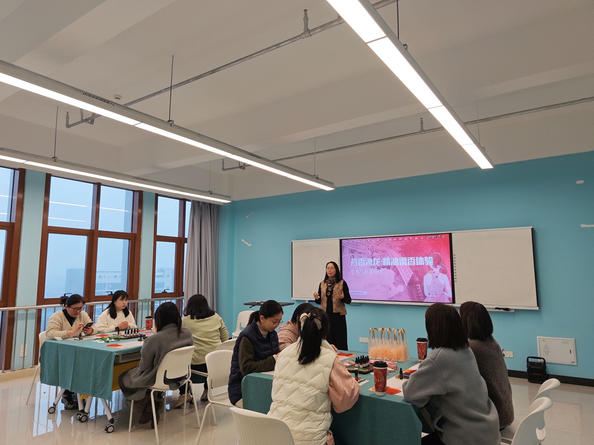 为庆祝第116个“三八”国际妇女节,关爱女性教职工身心健康,丰富文化生活,3月17日下午,爱尔兰学院分工会在崇德楼1107举办“馥郁时光·慢调芳华”香薰手作体验活动。活动通过香薰文化讲解、手作体验与互动交流,为学院女教职工带来一场身心放松的春日雅集。
