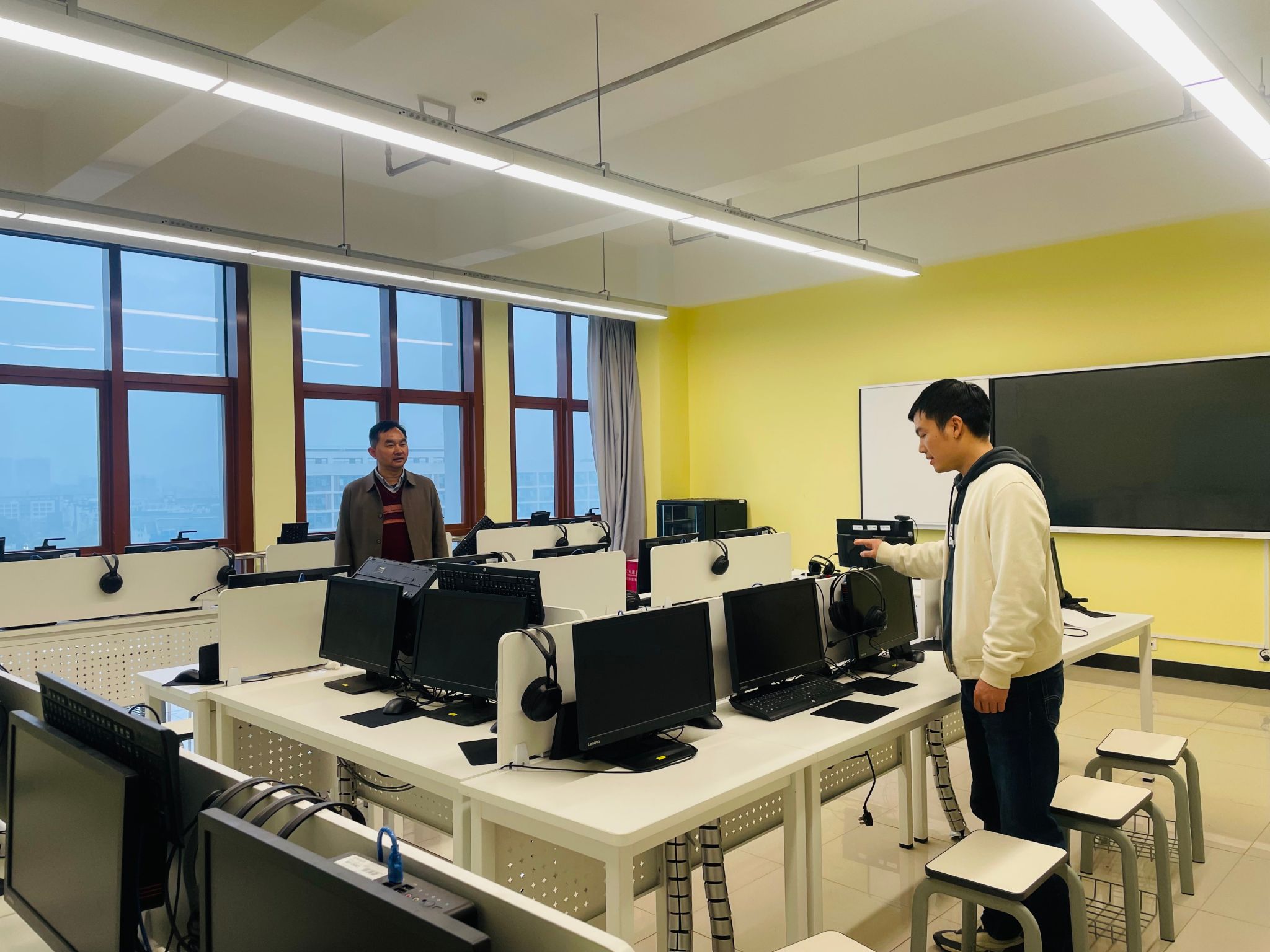 检查组重点走访了各实验实训室及公共学习区域,逐一查看消防设施及门窗闭合情况。经检查,各场所总体安全状况良好,设备管理规范,消防器材完好有效。检查过程中,检查组将每一间教室、实训室的门窗全部关闭并确认锁好,切实做到“人走断电、关窗锁门”,严防因假期无人值守引发安全问题。